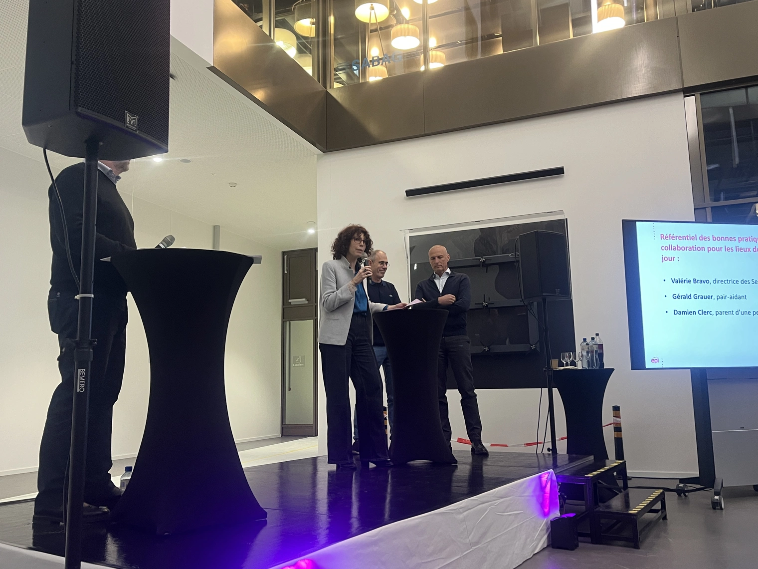 Le Référentiel des bonnes pratiques en matière de collaboration dans les lieux de vie et les centres de jour a été présenté par Valérie Bravo, directrice des Services socio-éducatifs, accompagnée de Gérald Grauer, pair-praticien, et de Damien Clerc, parent d’une personne vivant aux EPI. Cet outil clé vise à renforcer la transparence, à clarifier la place et le rôle de chacune et chacun, et à soutenir des relations de collaboration respectueuses et équilibrées.