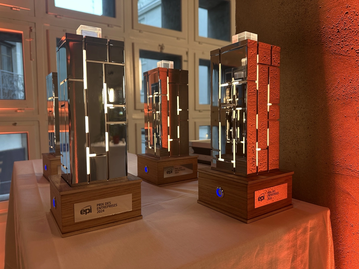 Chacune des quatre entreprises distinguées a reçu un trophée conçu dans les ateliers des EPI :